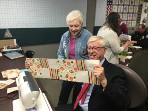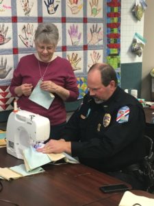 14 Quilts had been gathered before the sewing even began! The goal is 40 quilts to provide two quilts to be in each law enforcement vehicle.