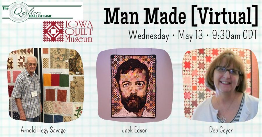 Join them on Wednesday, May 13th, at 9:30am, for a virtual meet-up with Deb Geyer, Executive Director at the The Quilters Hall of Fame, and quilters Arnold Hegy Savage and Jack Edson featuring three quilts that are part of our current exhibit, Man Made. IQM director Megan Barrett and the curator of Man Made, Tony Jacobson, will host this program via Zoom.