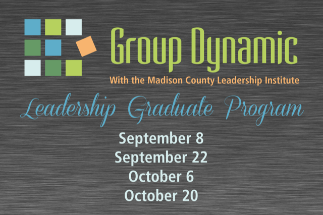 Group Dynamic and the Madison County Leadership Institute have partnered to offer a four-part leadership graduate series this fall. This series is only for graduates of MCLI, or another leadership institute, as it goes above and beyond basic leadership skills. The focus will be on three core leadership principals: conflict, teamwork, and communication.