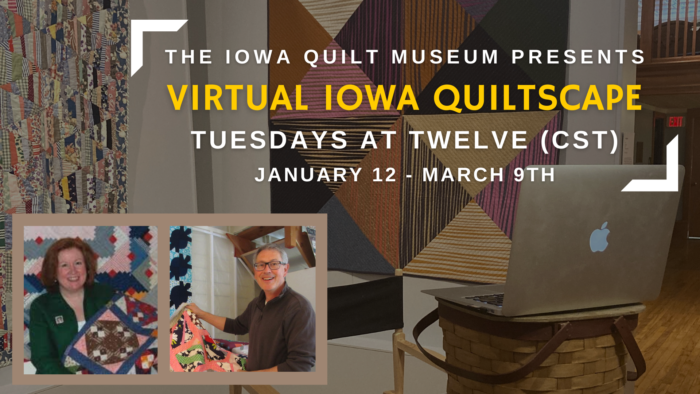 In my post earlier this week, I highlighted a local attraction, the Iowa Quilt Museum, that is doing a large series of virtual programming right now. Each Tuesday at Twelve, you can find them online sharing quilt-related programs with viewers from across the country.