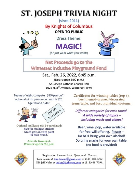 This isn’t your average trivia night! And all proceeds will support the Winterset Inclusive Playground Fund.