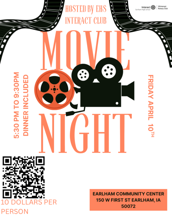 They’ve put together a Movie Night at the Earlham Community Center from 5:30–9:30 PM, dinner included, just $10 per kid ages 6–12. All proceeds support their global initiative with ShelterBox, and additional details can be found on the flyer above.