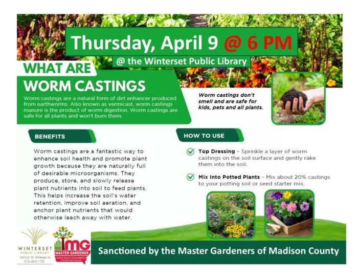 The workshop will take place Thursday, April 9, 2026, beginning at 5:30 p.m. at the Madison County Extension Office, 117 North John Wayne Drive in Winterset. A light meal will be provided.