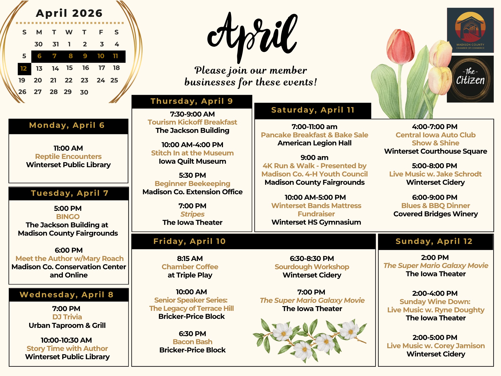 Chamber Members: We would love to include your upcoming events in the weekly snapshot, Chamber Chat and The Citizen! To ensure you get included, please email your event information to: communications@madisoncounty.com