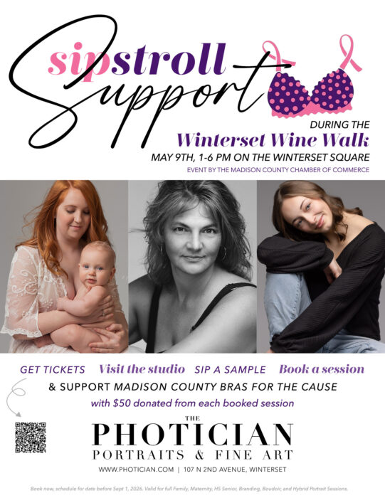 The Madison County Conservation Center, located in Pammel Park, 2508 Pammel Park Trail, Winterset, IA, provides a welcoming venue for artists to showcase and sell original, high-quality art. Invited artists will represent a range of media, including painting, ceramics, jewelry, and photography. Members of the public will have the opportunity to meet participating artists, explore their work, and purchase original artwork throughout the day. Artist demonstrations, refreshments, and children’s activities will be a part of the event. The MCCC doors are open and free to the public on the same day.