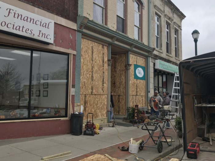 Several storefronts on our historic town square are undergoing rehabilitation. Winterset was on the receiving end of a very large grant to help make all this possible and, while it looks a little dreary in the interim, it’s going to be a wonderful facelift for our shopping district. On the south side of the square, Madison County Mercantile and Piece Works are in the process of getting windows replaced. Hopefully the plywood will be down and the glass will return soon!