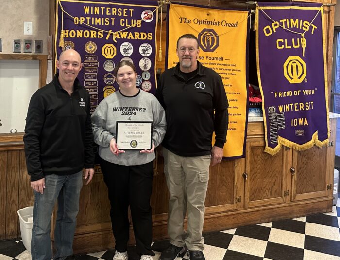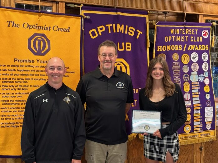 - Students who are recognized as Students of the Month will receive a $50 gift card and the Winterset Optimist Club will present $100 in the student’s name to the charity of their choice.