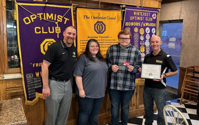 As friends and supporters of the youth in Winterset, the Winterset Optimist Club would like to formally recognize Senior students at Winterset High School and homeschool students living within Winterset that exemplify outstanding character and achievement that aligns to the Optimist Creed. By recognizing these outstanding students and young citizens it is our hope that they will continue to live the Optimist Creed and be examples for others to follow. Investing in these young adults and honoring them for their achievements will encourage them to continue to lead by example and give back to their community.